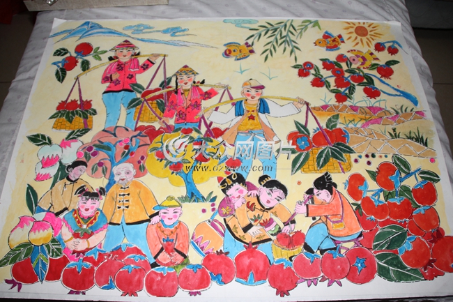 “臨朐農民畫,并不是臨朐農民畫的畫,而是反映農村生產生活的畫。它的前身叫臨朐手繪年畫。無論作者是農民還是干部,只要是反映當地風俗和生活的創作,都可稱為臨朐農民畫!崩钪揪榻B說。