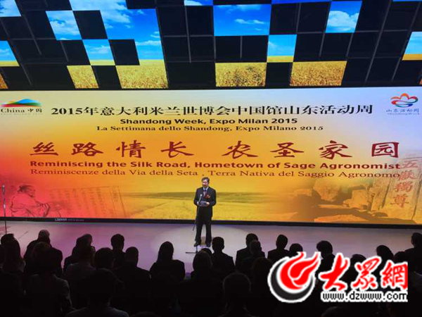 米蘭世博會山東周組委會主任王軍民在開幕式上介紹了山東農業發展成就和山東與意大利經貿合作情況。