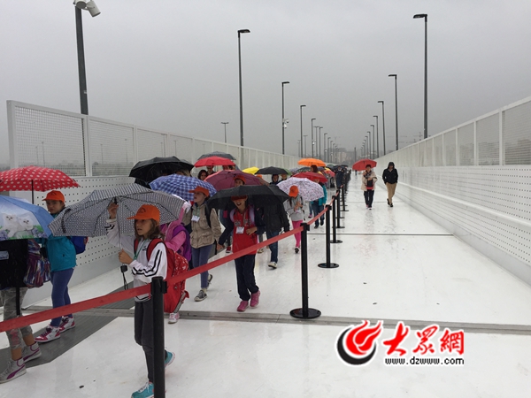 米蘭當地時間8點,天空烏云密布,風雨欲來。米蘭世博會每天10點正式對游客開放,9點,參加米蘭世博會山東活動周的山東代表團早早來到世博園南門,等待入場。此時天空慢慢飄起了細雨,雨越下越大,排隊等待的游客紛紛打起了傘。