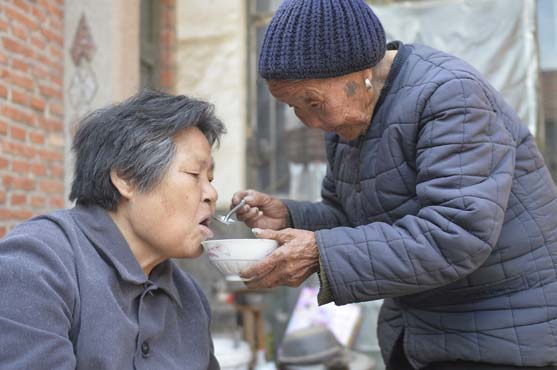 “俺娘哎!她剛得病那陣子,一直昏迷。住了好長(zhǎng)一段時(shí)間醫(yī)院,人倒是醒了,就是活動(dòng)不方便了,半個(gè)身子不能動(dòng),生活不能自理!标愓滋m老人想起往事禁不住感嘆,“沒(méi)法子,俺就照顧照顧她吧,給她做口飯吃,幫她活動(dòng)活動(dòng)!