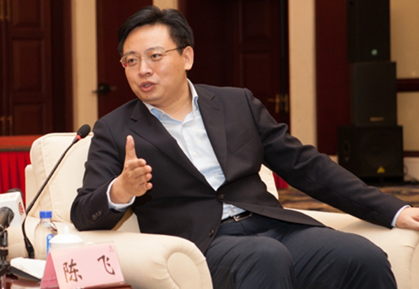 德州市委副書記、市長(zhǎng)陳飛與“新常態(tài)·新定位·新提升——第十一屆中國網(wǎng)絡(luò)媒體山東行”西線采訪團(tuán)記者座談。(大眾網(wǎng) 撒偉 攝)