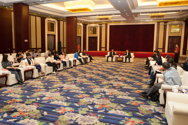 德州市委副書記、市長(zhǎng)陳飛與“新常態(tài)·新定位·新提升-——第十一屆中國網(wǎng)絡(luò)媒體山東行”西線采訪團(tuán)記者座談。(大眾網(wǎng) 撒偉 攝)