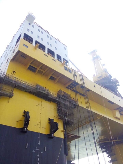 14日,采訪團記者在煙臺中集來福士看到,廠區內塔吊林立,機器轟鳴,一派忙碌景象。在中集來福士碼頭和船臺上,有5座深水半潛式鉆井平臺正在建造,這其中包括3座可在北極海域作業的GM4-D半潛鉆井平臺和2座D90第七代半潛式鉆井平臺,同期還有3座半潛式深水平臺在設計階段。