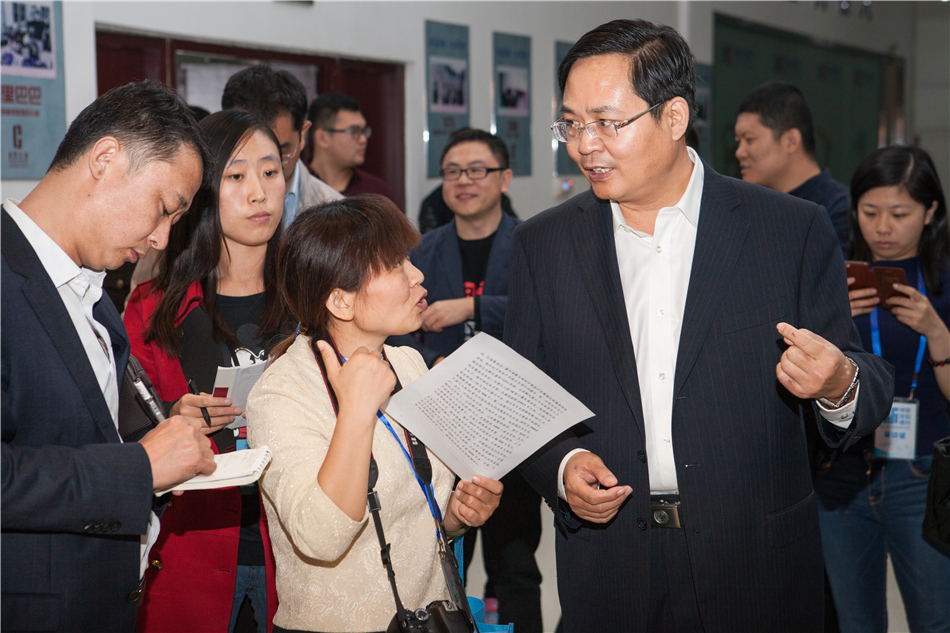 德州經(jīng)濟(jì)技術(shù)開發(fā)區(qū)黨工委委員王大山向記者介紹開發(fā)區(qū)對接京津冀和電商產(chǎn)業(yè)發(fā)展情況(大眾網(wǎng) 撒偉 攝)