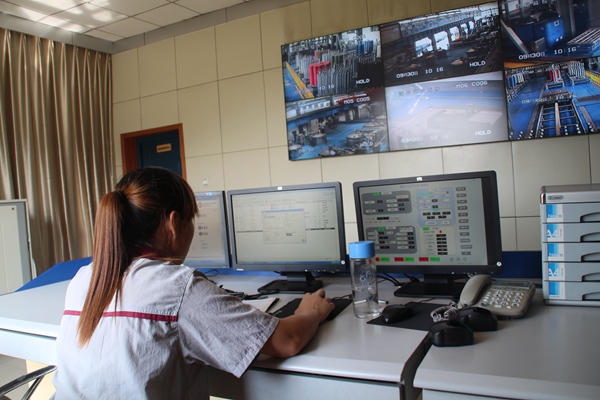筒子紗生產車間監控室對每一個生產環節進行監控查看