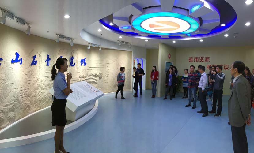在泰山石膏展覽館里,各種石膏板裝修材料顏色鮮艷、式樣繁多,引起了采訪團(tuán)成員的濃厚興趣。