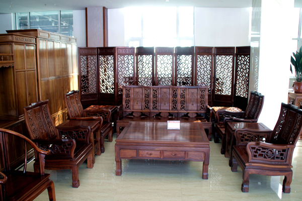 走進家具展銷館,泰森日立展出的紅木家具設計優(yōu)雅、做工精美,吸引了眾人的目光。