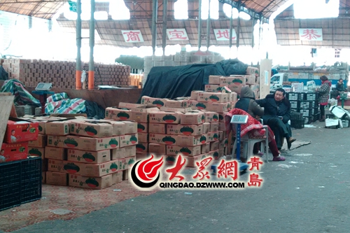 記者在青島市撫順路批發市場多家水果攤位前都未發現西瓜的身影。見習記者 萬程超 攝