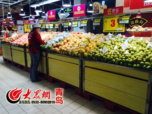 青島市內大型超市鮮見西瓜銷售。見習記者 萬程超 攝