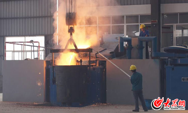 獲得財政引導資金2000多萬元后,山東遠大模具材料有限公司從當初的一家作坊企業搖身一變成為國內領先的特種金屬材料生產企業,成為高鐵、航空航天建設的重要材料供應企業。圖為山東遠大的主要生產設備之一——中頻熔煉爐。