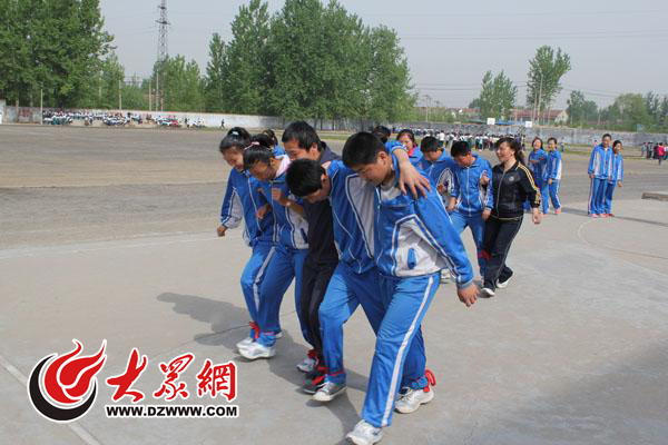 萊蕪市口鎮中學導師與學生共同參與親情運動會。
