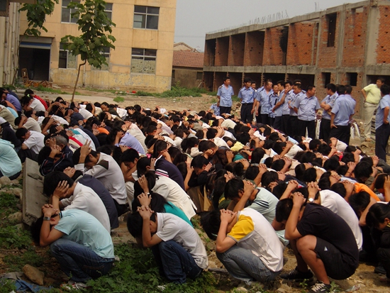 2008年8月1日由泰安市岱岳區政法委副書記王書記任總指揮,岱岳區公安分局副局長霍興起、岱岳區區工商分局副局長苗樹德、粥店辦事處王主任任副總指揮,各參戰單位帶隊領導為成員。共組織力量216人,其中公安局防暴隊20人,區公安分局66人,區工商局93人,粥店辦事處37人。