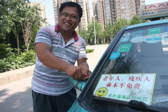 在齊河當(dāng)?shù)兀瑥埥ㄊ且粋(gè)做好事的“老典型”,是家喻戶曉的“好的哥”。他的出租車右側(cè)后視鏡座上,飄系著一條長(zhǎng)長(zhǎng)的紅絲帶,縣城里許多上了老年人、殘疾人都認(rèn)得這條紅絲帶,親切地稱為“我們的愛(ài)心車”,因?yàn)樽线@輛車,就像坐上私家車,的哥不但不收車費(fèi),還虛寒問(wèn)暖,給人一種溫馨的感覺(jué)。張建開(kāi)出租車三年來(lái),免費(fèi)接送的老人、孕婦、殘疾人已超過(guò)3000人,免收的費(fèi)用近三萬(wàn)元。