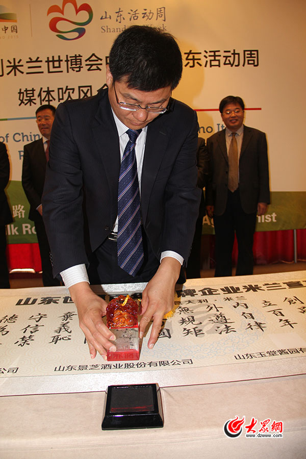 走過世紀歲月,當年亮相巴拿馬萬國博覽會的山東品牌,再度亮相世博會的舞臺,還原歷史,再現百年前中國品牌享譽世界的盛況。會上,8家山東世博百年品牌企業家們逐一上臺,為山東世博百年品牌企業《米蘭宣言》蓋章封印。