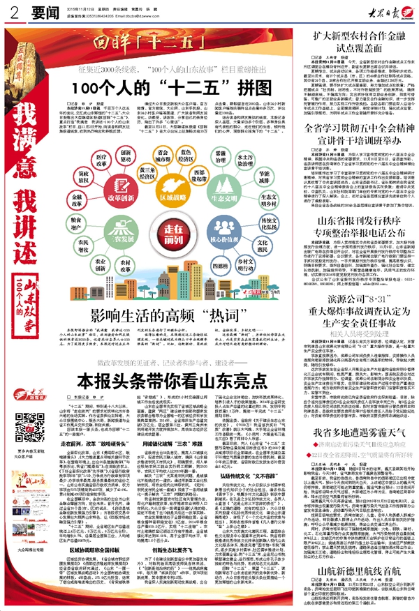 回眸“十二五”,展望“十三五”,謀劃新常態下山東走在前列的競爭新優勢、新動力,大眾日報將在頭版頭條位置描繪一個更加輝煌的山東新未來。