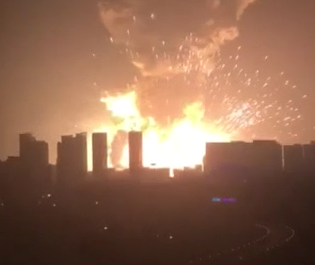 實拍天津濱海新區爆炸 網友被熱浪震倒