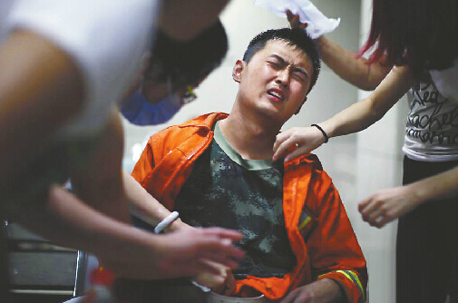 之后,劉斌被送往最近的泰達醫院,根據劉媽媽的描述,劉斌剛被送來的時候,渾身都是灰,消防帽也在爆炸中遺失。劉斌“肋骨骨折,肺挫傷,內臟積血”,目前仍在治療中。