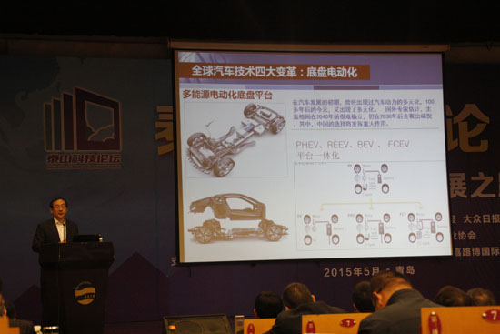 在主旨報告中,中國汽車工程學會常務副理事長兼秘書長張進華從全球汽車技術四大變革(電動化、輕量化、智能化、交通聯網化)、全球汽車產業與市場發展趨勢、面向低碳智能的中國汽車轉型發展戰略舉措、智能網聯汽車四個方面講述了汽車科技創新發展趨勢。從中國汽車產業發展面臨的挑戰與歷史任務及新能源、節能汽車兩方面具體對未來發展趨勢進行闡述。國家信息中心制造業信息處處長李偉利則以乘務車為實例從中長期乘務車市場發展趨勢、第一節度乘務車市場分析、2015全年市場預測三個方面具體講述了新常態下汽車工業的發展環境。在報告中,李處長重點以乘務車為例具體講述了第一節度銷量及分析結果與原因,各廠家針對結果做出的反映和決策等。