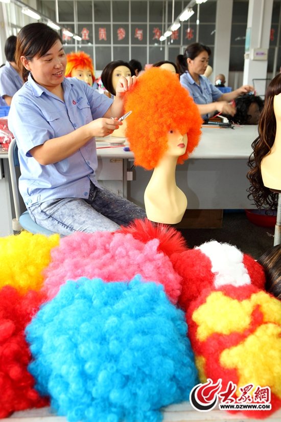 即發(fā)集團的制發(fā)工人在修剪出口到歐美市場的假發(fā)產(chǎn)品。