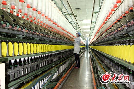 一名即發(fā)集團的工人在紡紗生產(chǎn)線上工作。