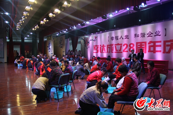 2012年,亨達28周年慶,馬俊柏等十大道德模范及亨達員工為父母洗腳