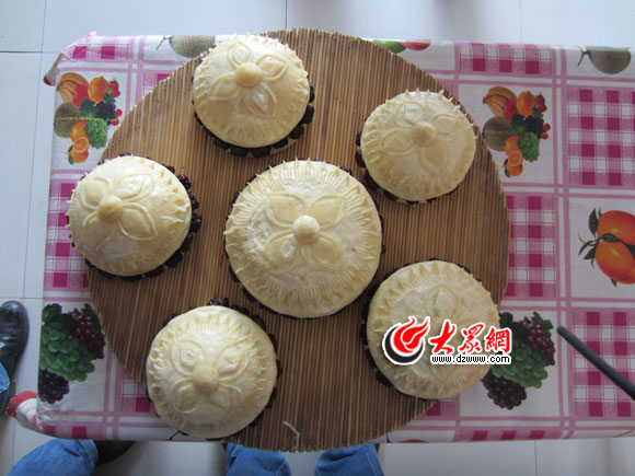 記者在鄰居張大娘家看到,年糕是用面粉和紅棗蒸制而成,精挑細選的大紅棗布滿年糕的底層面餅,然后再一層面一層棗,再加上一個帶有面花或面字的蓋子,預示著芝麻開花節節高。看到張大娘忙得不亦可乎,記者也洗了手想做個年糕,忙活半天,不是大小不合適,就是模樣不好看,最后再張大娘的指導下,終于做了一個還算說得過去的年糕。