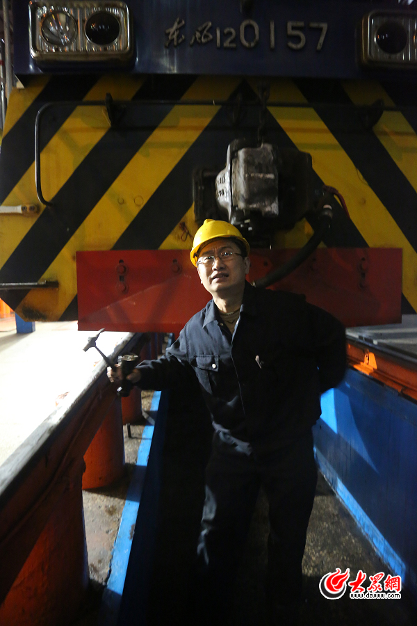 濟(jì)南鐵路局青島機(jī)務(wù)段青島整備車間走行組工長(zhǎng)江山,6:30分便已換好工作服,準(zhǔn)備一天的機(jī)車整修工作,這比平時(shí)還早了10分鐘。