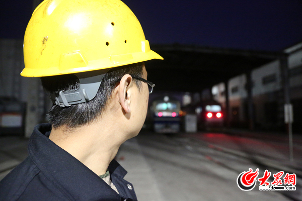 15.最后一臺(tái)車順利交車,江山站在庫(kù)房門口目送機(jī)車上線。