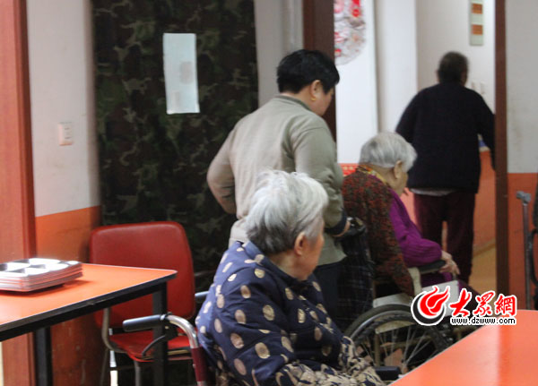 早上八點,擔任護理工的劉桂榮大姐開始了一天的忙碌,她和另一位同事負責護理一層的十幾位老人。兩人一直要忙到第二天早上八點,白天一小時巡視一次,晚上兩小時巡視一次,然后休息一天再接著干。從事護理行業四五年的劉大姐在很多老年公寓都工作過,“適合干這一行,誰家沒老人,誰不希望自己的老人晚年的生活過得更舒心一些。”干護理要不怕臟不怕累不怕麻煩,劉大姐每天的工作就是查看老人情況,為不能自理的老人喂飯,陪老人聊天,幫老人翻身,更換老人的床上用品……老人的輪椅輪胎沒氣了,細心的她找來氣管子打足氣。來自聊城的她今年快五十歲了,丈夫、兒子和女兒都在濟南工作、生活。今年春節,丈夫回家陪家里的老人過年,她則留下來護理老年公寓里的老人。“趁著孫輩還沒出生,正好出來再掙兩年錢。將來幫著看孩子的話就沒時間出來了。干護理這個行業,年輕人脾氣急干不了,年紀太大了又干不動。老人像孩子一樣,很多時候要哄,要有耐心。我這年齡還算比較合適。”她曾接受過專業培訓,對照顧老人比較在行,也喜歡這一行。“再高再重的老人,我也能從床上抱到輪椅上。”言語間,劉大姐頗有些女漢子的豪情。她也是個直脾氣,“我就是看不慣對老人不好。”曾去過一家老年公寓試工,這家公寓到了晚上就把老人鎖在屋里,第二天早上再打開門。她干了一天就離開了。“誰都有老的時候。對老人好,心里踏實。”劉大姐感慨地說。