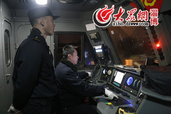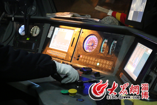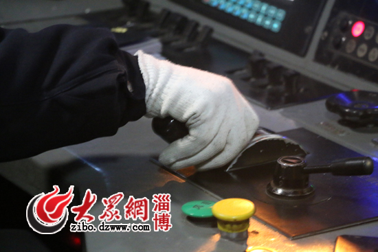 薛海濤駕駛的火車沒有電腦控制,只能是人工操作,掛檔、剎車、控制好時速。鳴笛、提手柄、呼喚應(yīng)答……列車行駛在路上后,薛海濤一直忙個不停。記者眼中復(fù)雜的步驟,在薛海濤手里卻是十分嫻熟而連貫,從淄博開往泰安,184公里的路程,是他26年鐵路生涯中最為熟悉的路線。