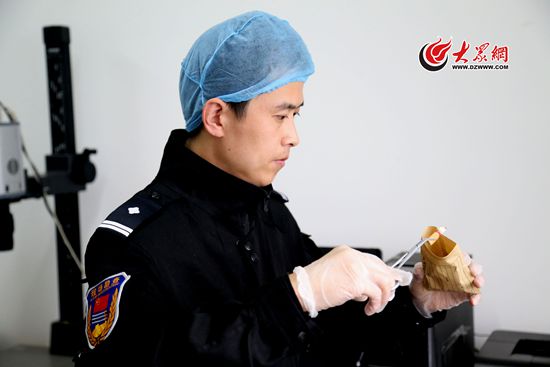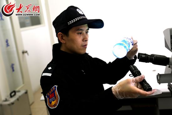 孫振正在對(duì)一只礦泉水瓶做指紋檢測(cè)(資料圖)