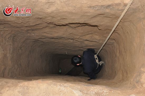 孫振勘察一個(gè)墓葬盜洞(資料圖)