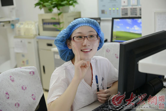 肖慧媛是煙臺毓璜頂醫院產房中的一名“90”后助產士,今年春節本該她回家過年,但是因為交通原因,沒能回家。在確定不能回家過年之后,肖慧媛毅然放棄休息時間,堅持回到工作崗位上,與同事一起在產房里過新年!敖衲晔俏业谝淮卧诖汗澠陂g上班,雖然不能回家和家人團聚,但是和科里的同事呆在一起,也讓我感到很高興。因為,我畢業之后就來煙臺毓璜頂醫院產房工作了,現在已經快2年了,在這期間,所有的同事給我的感覺都好像是家人一樣,我在這里可以感到像家一樣的溫暖!毙せ坻抡f。