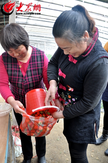2月23日,農歷大年初五,S204省道往來車輛還不算多,可是嵐山區虎山鎮四門口村路段卻車來車往絡繹不絕。春節期間正是磴山腳下的大棚草莓成熟的季節,到田間地頭摘草莓、體驗農事之樂,已經成為不少市民過年的新選擇。農民們雖然在大棚里度過了忙碌的春節,可腰包鼓起來了,心里很美。