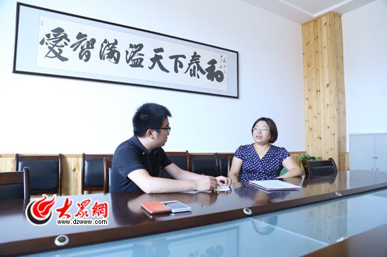“支教島”校長聯盟成員、青島天泰城學校校長王建娥(右)向大眾網記者講述她與“支教島”的不解之緣。(亓翔 攝)
