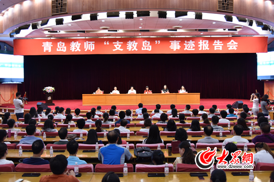 青島教師“支教島”事跡報告會現(xiàn)場。