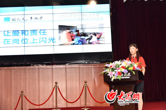 在報告會上,“支教島”創(chuàng)始人李淑芳以《讓愛和責任在崗位上閃光》為題做了主題演講。