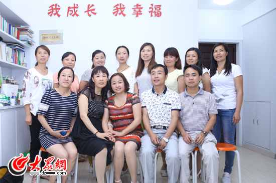 從貴州來青島學習的老師與李淑芳在“支教屋”里合影留念。(亓翔 攝)