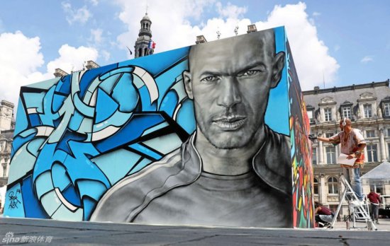 歐洲杯即將打響,法國巴黎的街頭也充滿了歐洲杯的氣氛,齊達內、C羅、伊涅斯塔、馬爾蒂尼的壁畫。