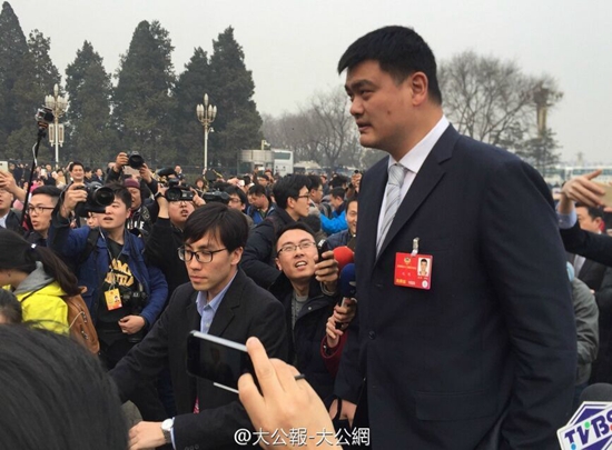 大眾網(wǎng)北京3月3日訊(特派記者 王磊)“去年提案受表?yè)P(yáng),今年有沒有新提案?”“準(zhǔn)備生二孩嗎?”……今天下午,在人民大會(huì)堂東側(cè)廣場(chǎng),全國(guó)政協(xié)委員姚明的出現(xiàn)迅速吸引大批記者追逐,面對(duì)各種提問,姚明一直一言未發(fā),大步走進(jìn)會(huì)場(chǎng)。