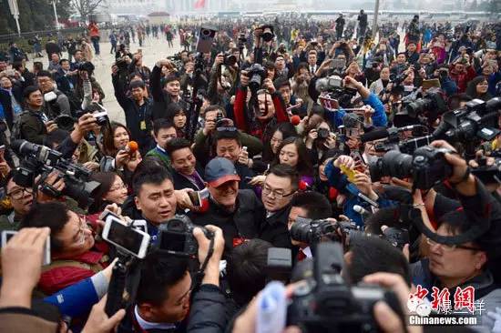 今天下午,距離全國政協十二屆四次會議開幕還有一個小時的時候,人民大會堂東側廣場上早已聚集了包括樣哥(爆三樣微信號:sdbaosanyang)在內的3000多位記者,一會兒,將有2000多位委員從這些手持“長槍短炮”的記者中間穿行而過。他們中有官員、軍人、大佬、明星、專家……其中,誰將成為當天的焦點人物,或許委員們與樣哥一樣,在下車的那一刻,心中依然忐忑。“李彥宏!”14點25分,當李帥哥出現的時候,現場的沉寂第一次被突然打破,當時樣哥還尋聲四處找人,只見前方一團人群迅速向樣哥奔來,要說走路的速度,李彥宏還真不比劉翔差,沒拍到正臉,樣哥只能含恨目送人群遠去。李彥宏之后,姚明、鞏漢林、張國立、姜昆、俞敏洪等大多都遭遇了李彥宏相似的圍堵和追問。不一會兒劉翔也來了,但他竟神奇地躲過了記者們的圍堵,悄悄地走進了會場。按說3000多記者盯著,不應該又漏掉他呀。可是,這次劉翔就像去年喊了一句“姚明來了!”一樣幸運,又有人替他出來解圍了。此人身穿黑色外套,頭戴深藍色帽子,一下車就被“逮”著了。