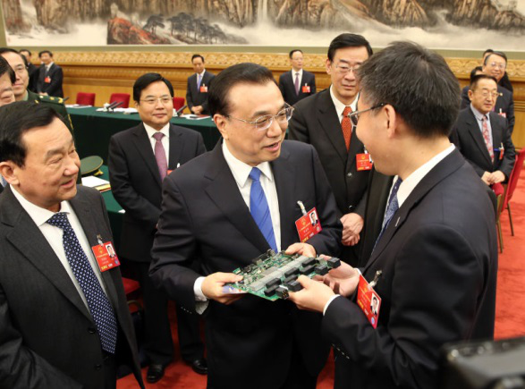 當(dāng)李克強走到全國人大代表、浪潮集團董事長孫丕恕面前時,孫丕恕現(xiàn)場向總理介紹企業(yè)研發(fā)的服務(wù)器產(chǎn)品,李克強雙手拿著產(chǎn)品,面帶笑容和孫丕恕親切交流。原來,早在2014年10月,李克強總理帶領(lǐng)浪潮去俄羅斯推廣中國的云核心裝備,并與梅德韋杰夫總理共同見證浪潮與俄羅斯簽署2.25億美元的服務(wù)器采購合同。今天的會上,李克強詢問了孫丕恕有關(guān)進展情況,孫丕恕匯報說,目前已經(jīng)開始規(guī)模供貨,并受俄羅斯關(guān)鍵應(yīng)用部門委托研發(fā)安全服務(wù)。