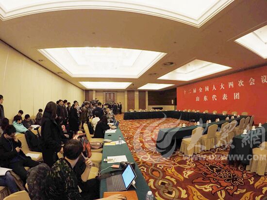 大眾網北京3月7日訊(特派記者 邢玉軍 樊思思 馬俊驥 王長坤 趙洪棟)今天下午3點,十二屆全國人大四次會議山東代表團舉行開放團組活動,將對外開放第二組。開放活動分為兩個階段進行,第一階段為代表審查“十三五”規劃綱要草案,第二階段是媒體采訪,第二組的全體代表將接受采訪。全國人大代表、山東省委副書記、省長郭樹清將回答中外記者提問。