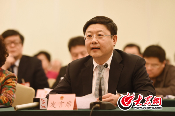 3月5日下午,全國(guó)人大代表、萊蕪市委書記王良在十二屆全國(guó)人大四次會(huì)議山東代表團(tuán)全體會(huì)議上發(fā)言。大眾網(wǎng)特派記者 王長(zhǎng)坤 攝