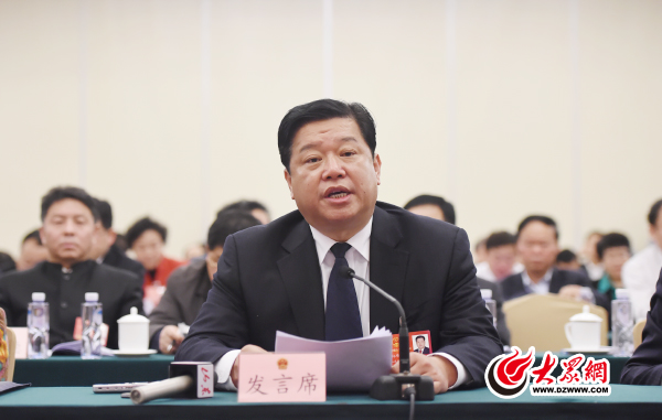 3月5日下午,全國人大代表、臨沂市委書記林峰海在十二屆全國人大四次會議山東代表團全體會議上發言。大眾網特派記者 王長坤 攝