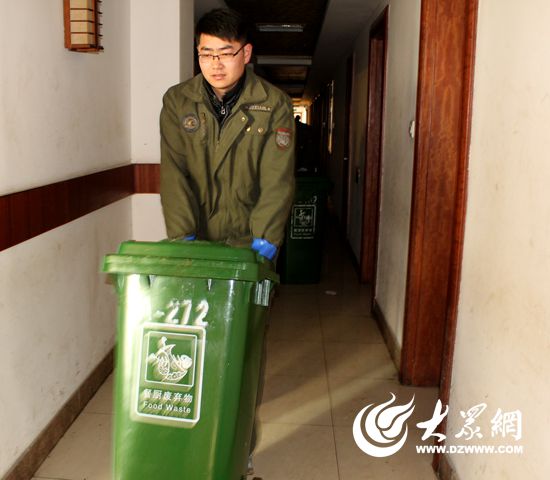 每天牟王強(qiáng)和同事們到后廚推餐廚垃圾收集桶