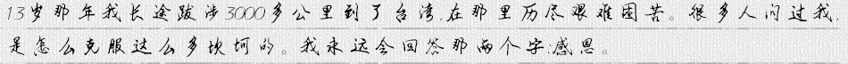 “我?guī)O女們來聾啞學(xué)校,是想讓她們看到爺爺是個有情有義的人,希望他們也能懂得感恩,懂得愛這個社會。”高老說,13歲那年他長途跋涉3000多公里,到臺灣后歷盡艱難困苦,有很多人問過他是怎么克服這么多坎坷的,“我永遠(yuǎn)會回答那兩個字:感恩。”