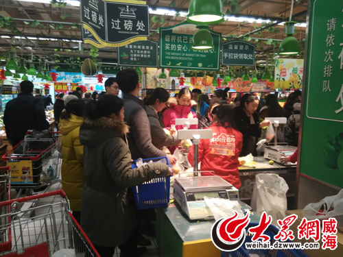 大眾網(wǎng)威海1月22日訊 (記者 李鑫 實(shí)習(xí)生 張哲 張雅馨) 寒潮來襲,影響的不光是天氣狀況,對人們的生活也帶來了一定影響。記者走訪威海市區(qū)各大超市發(fā)現(xiàn),得知要降溫,不少市民正忙著“囤菜”,打算在家“貓”著過周末。據(jù)超市工作人員介紹,目前蔬菜、肉類貨源充足,價格近期也不會有太大波動。
