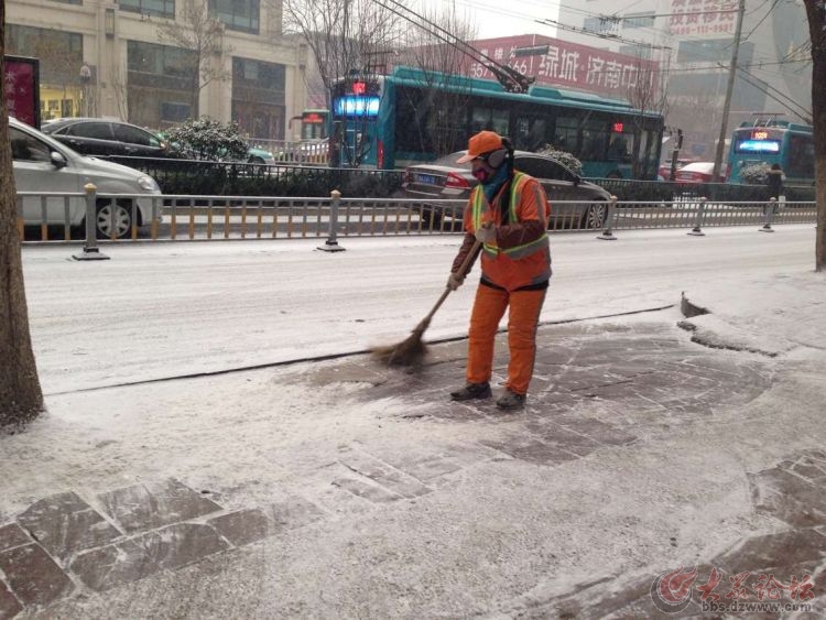濟(jì)南濼源大街上,環(huán)衛(wèi)工們4點(diǎn)就開始上路掃雪了。真辛苦!