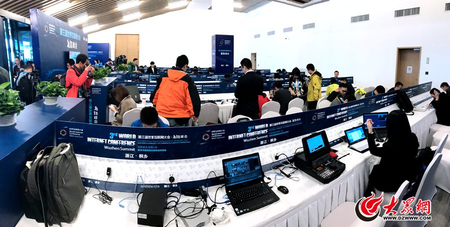 11月16日,第三屆世界互聯網大會在烏鎮開幕,會議間隙,來自世界各地的記者們正在工作區忙碌。大眾網記者 樊思思 攝